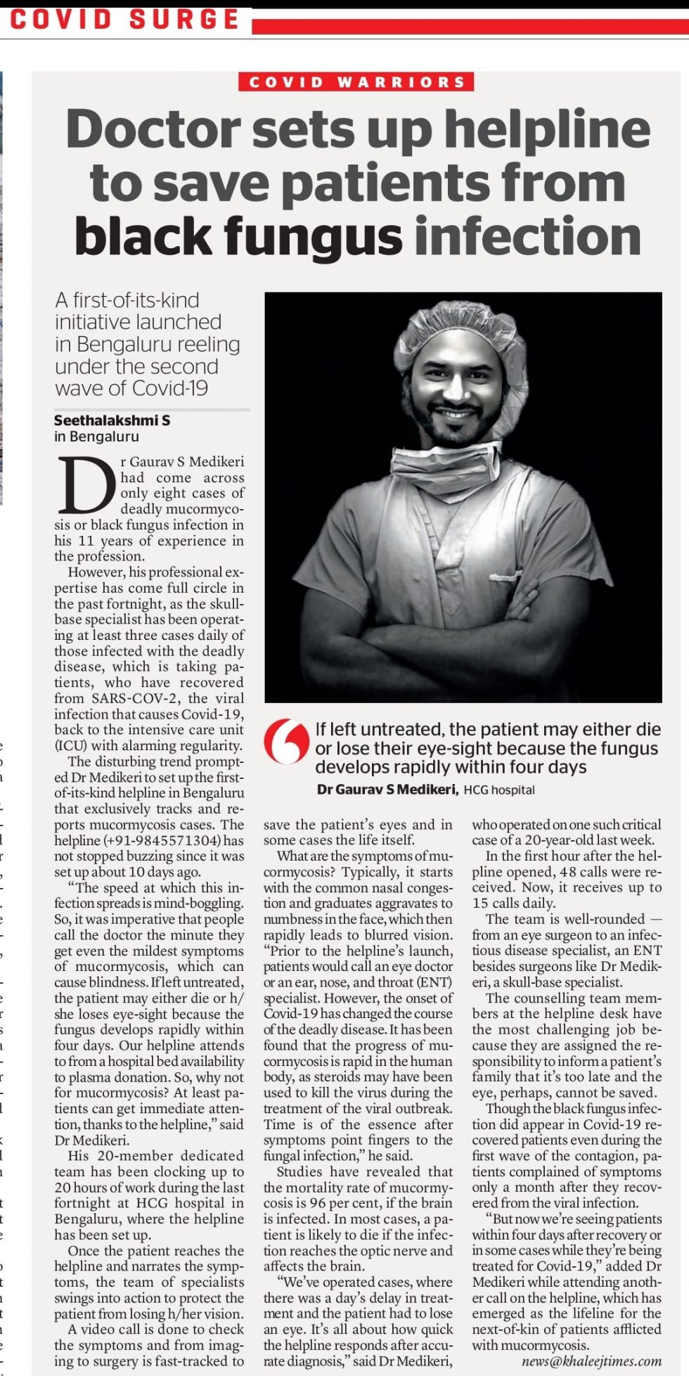 Dr. Gaurav Medikeri sets up a helpline number for patients suffering from Black Fungus Infection.