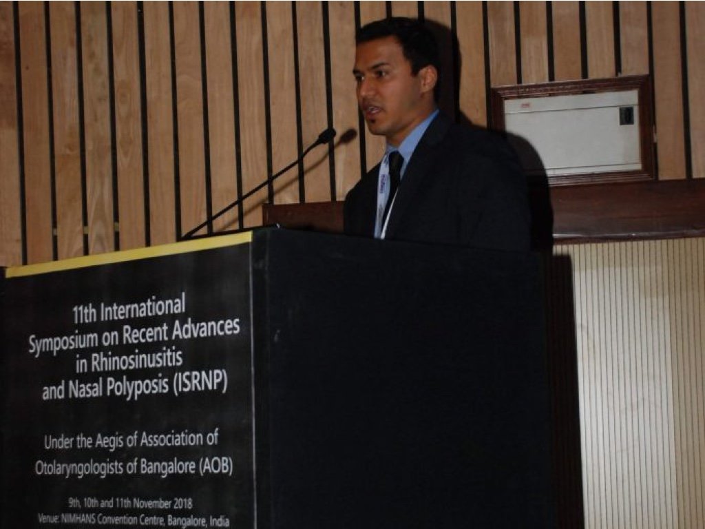Delivering a lecture on the management of Inverted papillomas at the International symposium of Rhino sinusitis and nasal polyposis.